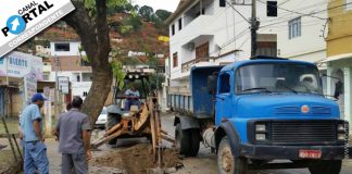 Tubulação de água se rompe na Rua São Francisco em Mantena