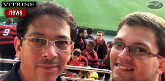 Max Pinto e o filho Davi festejando vitória do Brasil