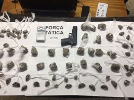 PM apreende 80 buchas de maconha e simulacro de pistola