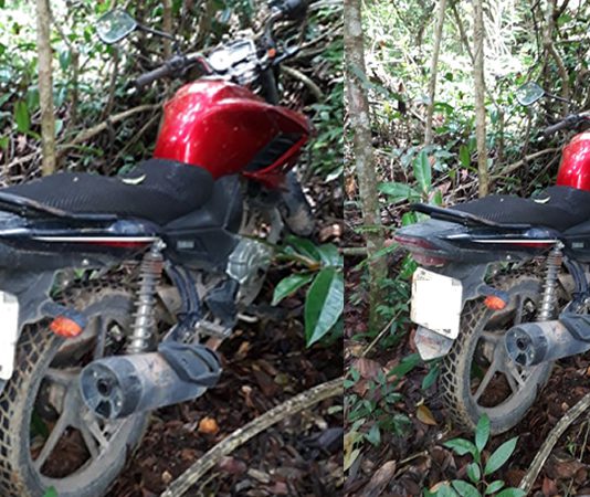 Polícia localiza em matagal, moto que foi roubada