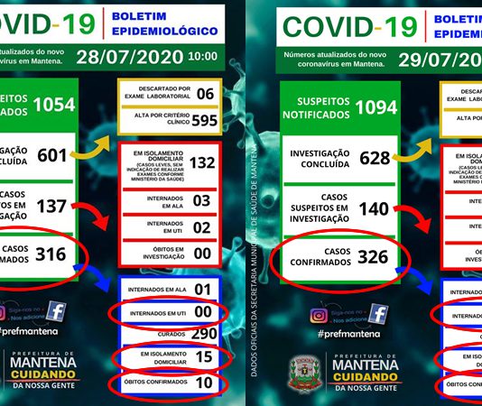 Covid: Mantena tem 10 novos casos em 24 hs e mais um óbito