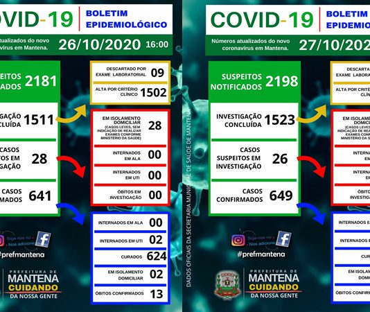 Covid: Mantena tem 15 casos ativos com 4 em UTI
