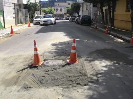 Trecho da rua Santa Luzia com restrição de estacionamento para obras do SAAE