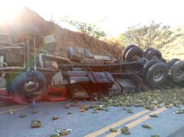 Caminhão carregado com mamão tomba entre SJO e Central