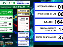 Covid: Mantena tem 20 casos ativos da doença