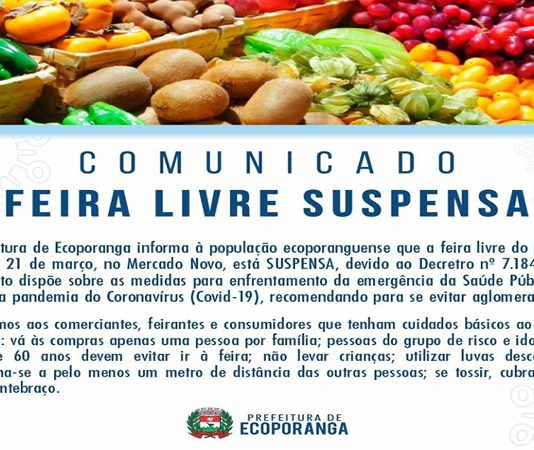 Coronavírus: Feira Livre em Ecoporanga é Suspensa