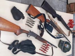 Mandado de prisão tem revólver e espingarda apreendidos