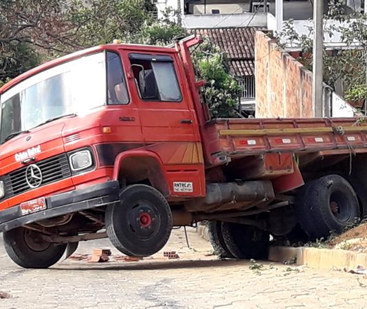 Susto, caminhão carregado desce ladeira e para no meio fio