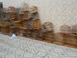 28 pássaros, 33 gaiolas e o outros objetos são apreendidos