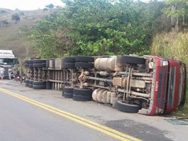 Carreta carregada com mamão tomba entre Vila Pavão e Vila Paulista