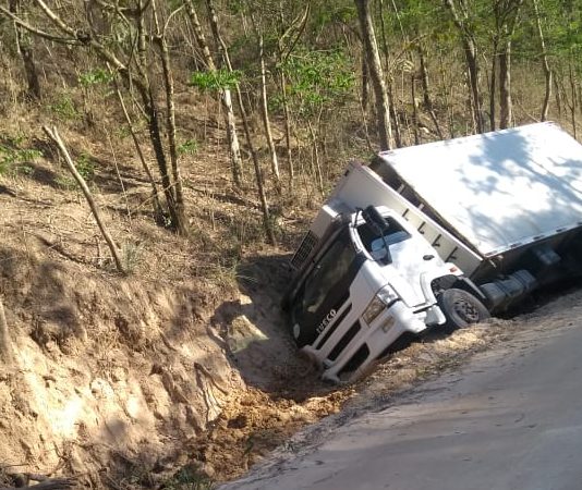 Caminhão bate em barranco entre Mantena e Nazário