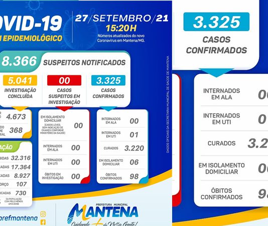 Covid: Mantena nesta data com apenas 7 casos ativos