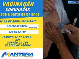Covid/Mantena: Vacina para acima de 67 anos nesta quinta