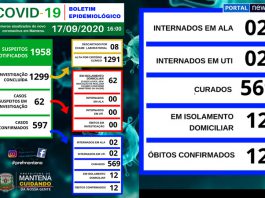 Covid: Mantena tem 16 casos ativos e 1 novo caso confirmado
