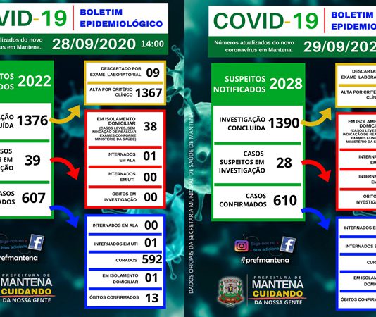 Covid: Mantena tem 3 novos casos, total de 4 casos ativos