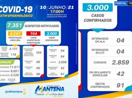 Covid 19: Boletim Atualizado, Mantena 03 de Junho
