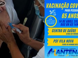 Mantena: Vacinação para 65 anos acima, nesta quarta-feira