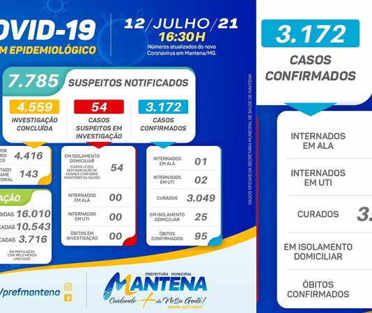 Covid: Mantena tem 178 pessoas em isolamento domiciliar