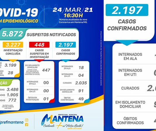 Covid/Mantena: Casos seguem subindo, 538 em isolamento