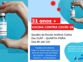 Covid: Mantena avança e vacina 31 anos acima nesta quarta