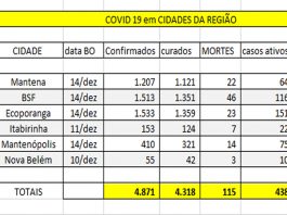 Covid: 6 municípios da região totalizam 115 óbitos registrados