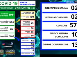 Covid/Mantena: Boletim confirma 13º óbito e 14 casos ativos