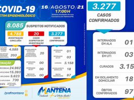 Covid/Mantena: Casos seguem com números estabilizados