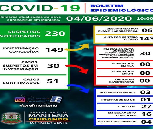 Covid 19: Mantena tem 51 casos confirmados com 27 curados