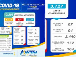 Covid: Alerta, Mantena registra 487 casos entre confirmados e suspeitos