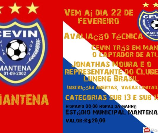 Mantena: Avaliação Técnica para Atletas sábado dia 22