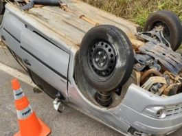Região: Veículo capota na rodovia, próximo de São Vitor
