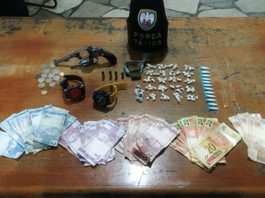 Rapaz é preso com drogas e PM apreende arma de fogo