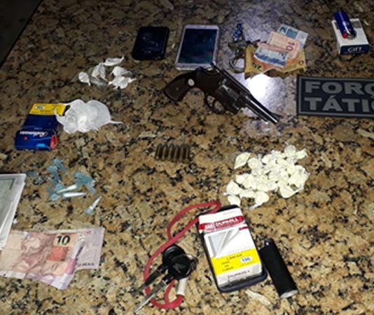Arma, dinheiro e drogas apreendidos em Operação da PM