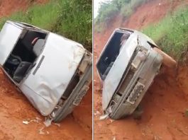 Pista escorregadia provoca capotamento em Mantena