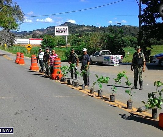 Mudas de árvores são distribuídas na rodovia no dia da Água em Mantena
