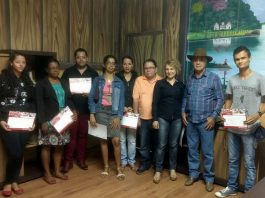 Alunos do curso de artesanato oferecido em Mantena, recebem os certificados