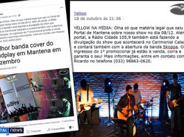 Matéria do portalmantena é destaque no Facebook da banda Yellow