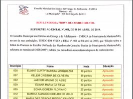 Mantena: CMDCA divulga Aprovados na prova de conhecimento