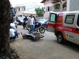 Moto e carro se envolvem em acidente no centro em Mantena