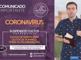 Coronavírus: PIB de Mantena suspende seus Cultos Presenciais