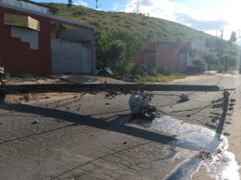 Veículo derruba poste, árvore e bloqueia pista em Mantena
