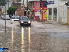 Mantena: Chuva chegou forte, 38 mm alagando ruas