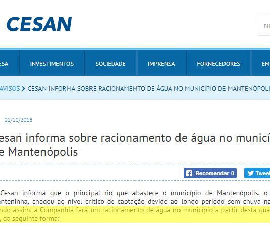 Nível crítico do rio faz Mantenópolis entrar no racionamento de água