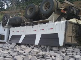 Nova Belém: Caminhão caçamba perde freio e tomba na serra