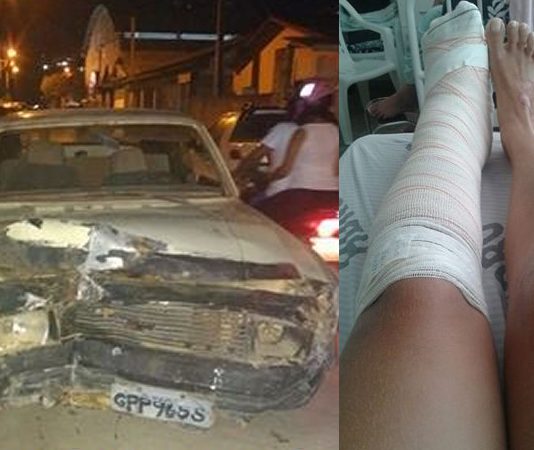 Choque entre carro e moto em Ecoporanga deixa mulher com o pé quebrado