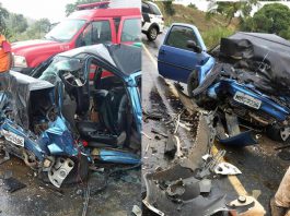 Motoristas ficam presos às ferragens após batida frontal entre dois veículos próximo de Vila Paulista