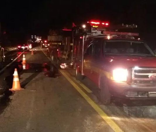 Caminhão tomba e pega fogo na Serra do Canivete