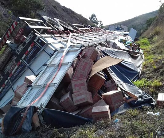 Carreta carregada com bebidas tomba na rodovia