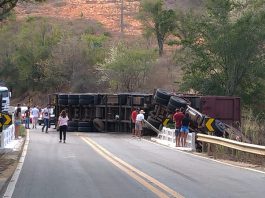 Carreta carregada com carvão tomba em ponte da região