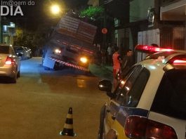 31MAI – Caminhão fica com a carga inclinada após problemas mecânicos no centro da cidade